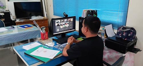 นางสาวดาเรศ ชูยก ผู้อำนวยการกลุ่มงานสารสนเทศการพัฒนาชุมชน สำนักงานพัฒนาชุมชนจังหวัดยะลา ประชุมชี้แจงทำความเข้าใจระบบ CDD AI ก่อนการใช้งานจริง ผ่านระบบการประชุมทางไกลออนไลน์ Webex