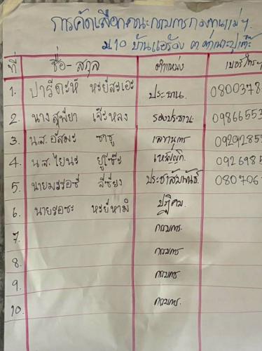 โดยเจ้าหน้าที่พัฒนาชุมชน ได้ชี้แจง ทำความเข้าใจเกี่ยวกับกองทุนแม่ของแผ่นดิน และจัดทำแผนปฏิบัติการพัฒนาหมู่บ้านต้นกล้ากองทุนแม่ของแผ่นดิน 10 ขั้น พร้อมทั้งจัดตั้งคณะกรรมการกองทุนฯ และคณะกรรมการฯ จะดำเนินการประชุมเพื่อกำหนดกฎชุมชนเข้มแข็ง ตามลำดับขั้นตอนต่อไปตามลำดับ