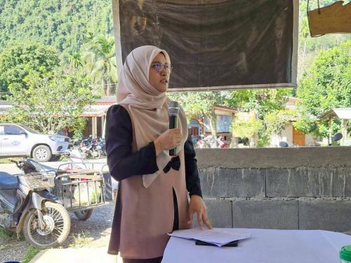และนางสาวอาซีเย๊าะ อาเย๊าะซู นักวิชาการสาธารณสุขชำนาญการ รพ.สต.บ้านบือซู ให้ความรู้ในหัวข้อ “การยุติความรุนแรง”ต่อสตรีในระดับพื้นที่” โดยยกตัวอย่างกรณีศึกษา ได้แก่ การกลั่นแกล้งที่แสดงออกด้วยคำพูดในโรงเรียน ปัญหาการตั้งครรภ์ในวัยเรียน การข่มขืนกระทำชำเราในสถานที่ทางศาสนา (ต่างประเทศ) ปัญหาการเลียนแบบความรุนแรงจากโซเชียลมีเดีย และแจ้งช่องทางการร้องทุกข์ร้องเรียน เป็นต้น